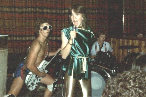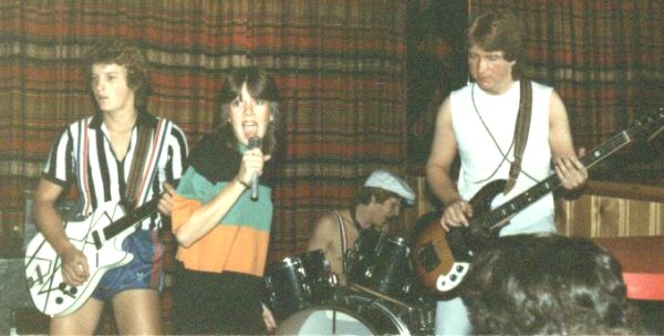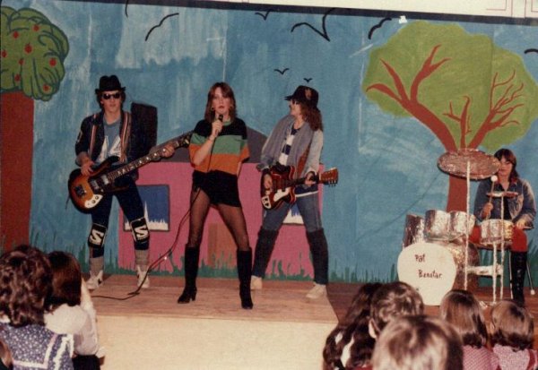 We had a Lipsing band called Pat Benatar in 1981-1982. Members were Robert Brochu (guitar), Sylvie Larouche (bass), Johanne Picard (drums) and Nat Quessy (singer). It first started during a Christmas concert in Holy Family. Here are pictures of members of the band for you to enjoy.